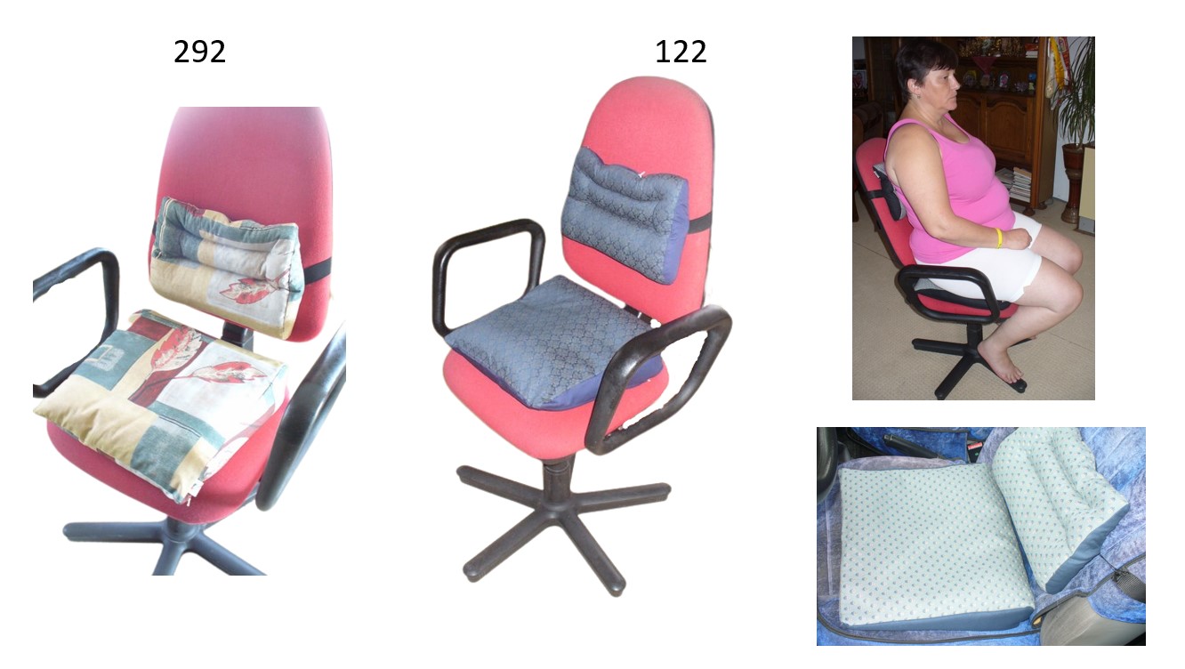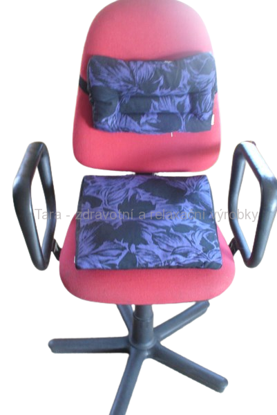 Poduška (klín) TAMARA i zdravotní bederní opěrka TAMARIS ( souprava ) jsou tvarovatelné a lze je využít k pohodlnému sezení na židlích při práci v kanceláři, u počítače, v domácnosti, na sedadlech automobilů i při cvičení, relaxaci a meditaci. TAMARIS se upevňuje na opěradlo židle rovnou stranou, lze jej různě natáčet, aby dobře seděl. TAMARA je vhodná na uvolnění kyčlí při sezení na invalidním vozíku - lze jej ustavit tak, že jsou kolena vyvýšena - tím TAMARIS blahodárně působí a masíruje bederní páteř. Jsou vhodným doplňkem bytového zařízení, kanceláří, automobilů. BIO špaldové slupky v kombinaci s pohankovými slupkami jsou charakteristické svojí tvarovou stálostí, revitalizačními účinky, zajišťují stabilitu a pohodlí při dlouhodobém sezení, zejména při hemoroidech, namožené kostrči, bolestech páteře apod. Mají velmi dobré izolační vlasti, udržují teplo, chrání před vlhkem a chladem, mají mikromasážní účinky, velmi dobře prohřívají ledviny. Povlak je vyroben v kombinaci potahové látky a bavlny, je opatřen gumou a sponou. TAMARIS ( přikládá se rovnou stranou k opěradlu židle ) je pro prodloužení životnosti zpevněn ještě vnitřní vrstvou bavlny. Účinnost BIO náplně se zvyšuje nahřátím - radiátory, kachlová kamna, sluníčko, horkovzdušné trouby, remoska, hrnek nebo pánev s pokličkou, fénem. Povlak výrobků lze prát do 40 C, nebo jej čistíme jako koberce - u TAMARY je vnitřní povlak vyroben ze 100% bavlny, TAMARIS je možno vyčistit pěnou jako koberce a rychle usušit.